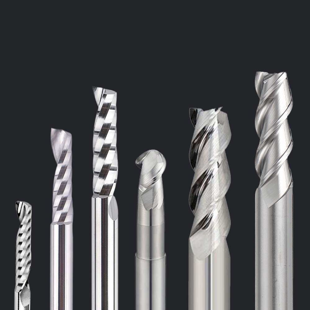 1, 2 ve 3 helis kanallı olarak, köșe pahlı, köșe radüslü, keskin kenar ve küre freze seçenekleri